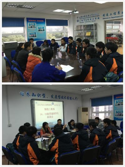 2016年1月7日下午,高职学院、高级技校2014、2015级数控技术中高职贯通班的学期末座谈会召开,学院、校制造工程系部门领导、班主任、贯通班学生代表参加,系主任万军主持会议。