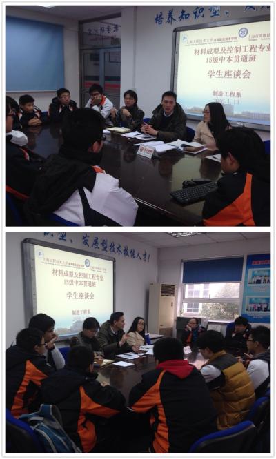 2016年1月13日下午,高职学院、高级技校召开了15级材料成型及控制工程(现代模具成形)专业学生座谈会,会议由制造工程系主任万军主持,系副主任刘素华、模具教研室主任杨梅、中本贯通班班主任沙乾及学生代表参加了会议。