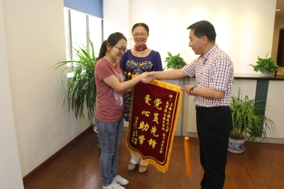 2016年6月7日下午,校产办党支部全体党员高兴地收到了一份喜悦,一幅来自13级陈程同学赠送的“党员先锋,爱心助学”的锦旗。