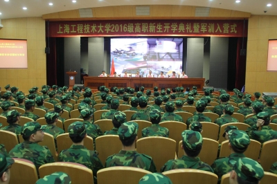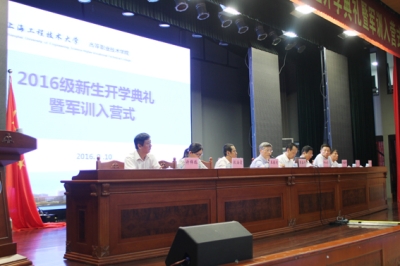 9月10日,高职学院2016级新生开学典礼暨军训入营式在虹口校区师生活动中心涵景堂隆重举行。工程技术大学鲁嘉华副校长出席典礼,校办副主任王振钧、高职学院党委书记柳如荣、副书记田盈耕、段海霞,副院长胡宁、许锦彪、郑卫出席,高职学院2016级568名全体受训学员参加。典礼由学院党委书记柳如荣主持。