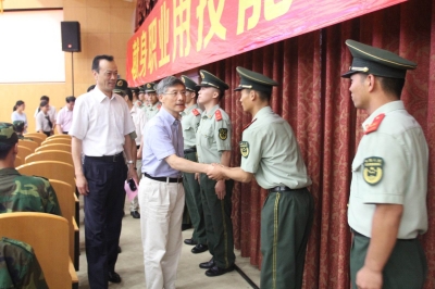 开学典礼结束后,鲁嘉华副校长在高职学院领导的陪同下亲切接见和慰问了执行本次训练任务的军训教官。