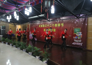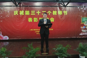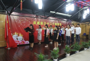 每年教师节活动的保留节目,新进教师们在会上自我介绍,男、女教师分别演唱了歌曲《水手》、《小幸运》,在制造工程系刘素华副教授的领誓下对着国旗进行庄严的就职宣誓。