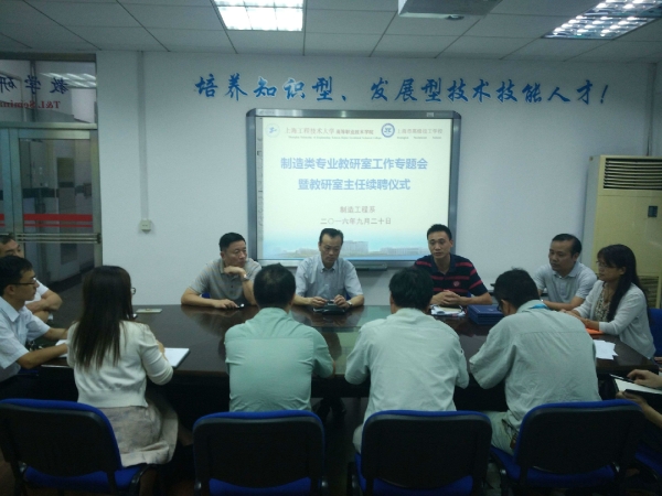 高职学院、高级技校于9月20日下午三点,在制造工程系召开了“制造类专业教研室工作专题会暨教研室主任续聘仪式”,高职学院、高级技校领导柳如荣书记、胡宁副院长、制造工程系主任万军老师、副主任杜继涛老师、刘素华老师、全体教研室主任参加了此次会议。
