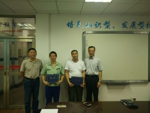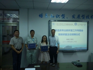 会上,柳如荣书记和胡宁副院长分别为数字化制造技术专业教研室主任周立波老师和副主任郑民章老师、模具成形技术专业教研室主任杨梅老师和副主任曹志鸿老师、机械制造工艺及测量技术专业教研室主任徐福林老师和副主任张伟老师颁发了教研室主任聘任证书。