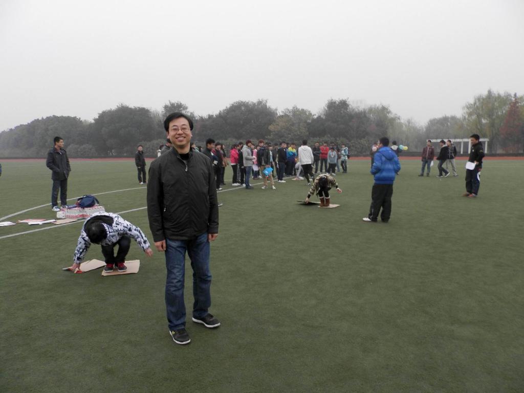 在活动的开始,系主任任新锋老师向为本次活动致开幕词,鼓励大家快乐运动,团结友爱。活动陆续进行,“七人八足”,同学们的号子喊的整齐又响亮,“1——2——1——2——”的声音传遍整个操场,连正在进行社团活动的人都忍不住来围观。老师们也在旁边为同学们加油鼓劲,为同学们出谋划策。在“心心相印”的游戏中,双方均不遗余力。由于有些团队战术运用得当,从螃蟹式的横着走改为了前进式奔跑,最终获得了胜利,这时全场的人都忍不住爆发出了掌声和尖叫声。此次活动在欢笑声中接近尾声,活动最后所有人合影留念。