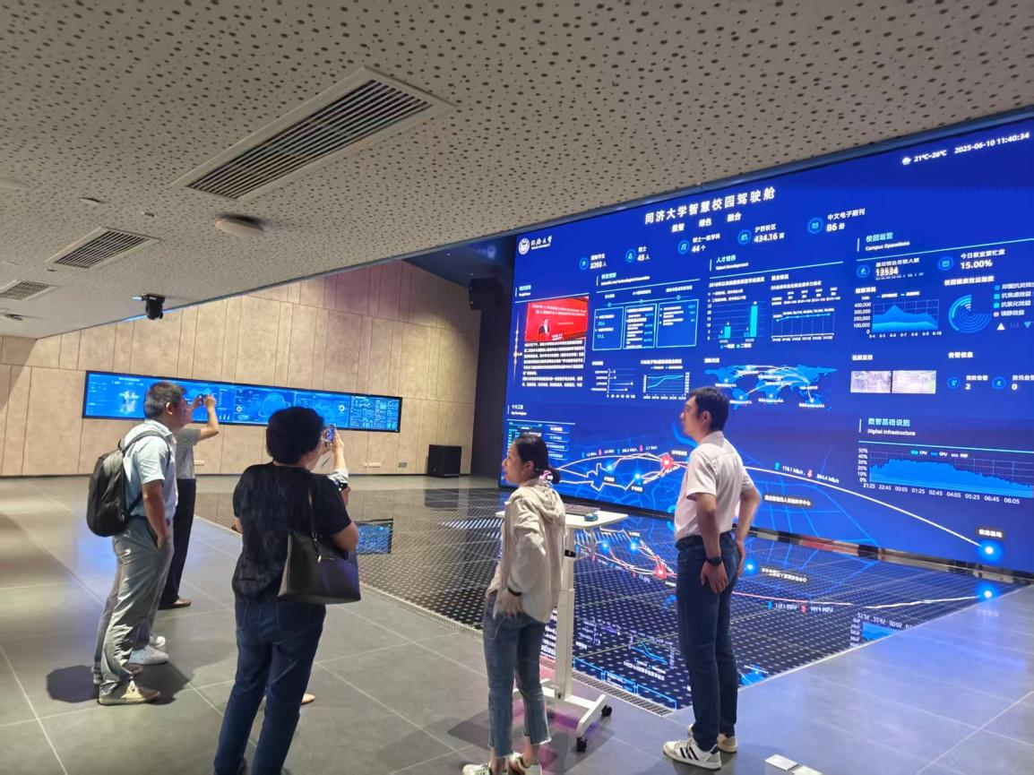 会后,调研团队实地参观了同济大学中法中心校园驾驶舱,双方就平台数据整合、功能模块设计、应用场景拓展等建设经验展开深度交流,现场氛围热烈。
