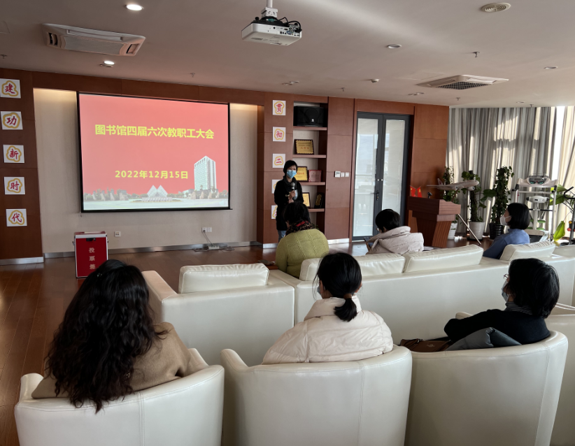 12月15日,图书馆四届六次教职工大会在航飞楼6429室召开。